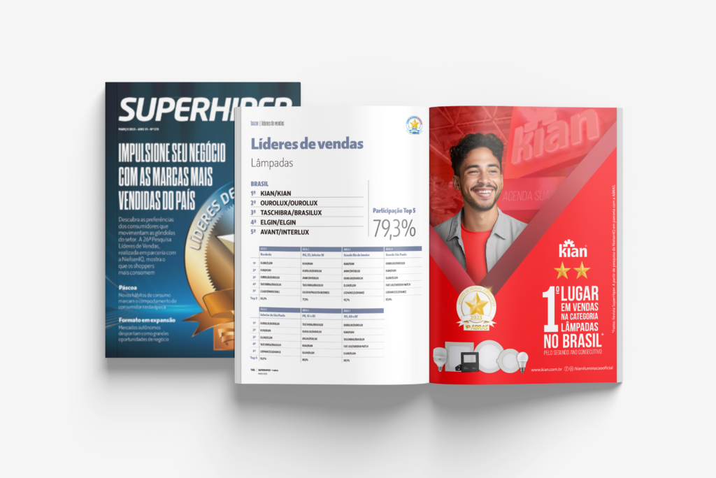 Pelo segundo ano consecutivo, nossas lâmpadas LED foram as que mais iluminaram o dia a dia dos brasileiros, segundo pesquisa da NielsenIQ em parceria com a Associação Brasileira de Supermercados (ABRAS). Veja aqui o ranking na revista SuperHiper.