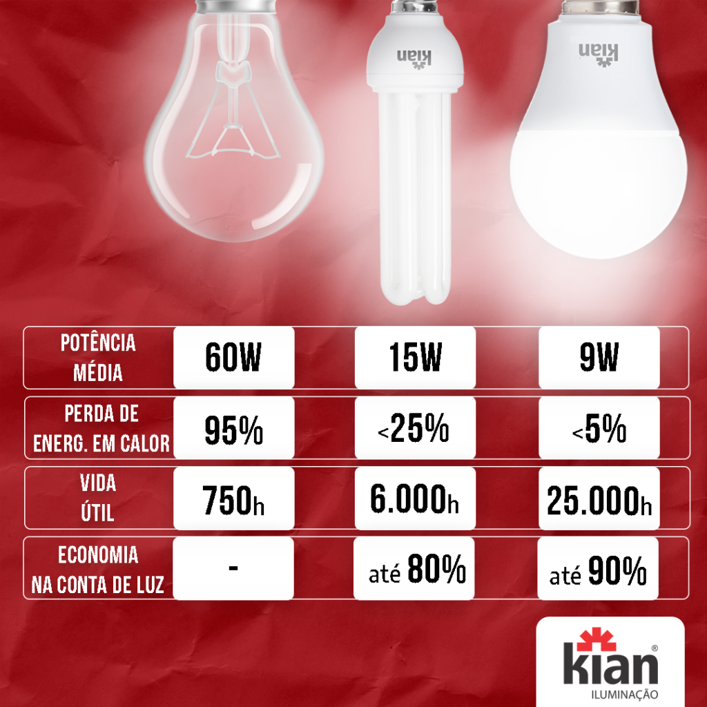Substitua a iluminação convencional de sua casa por lâmpadas de LED. Essa tecnologia emite luz eficiente e representa uma economia de até 90% quando comparada às incandescentes. Além disso, ela dura até 2,5 vezes mais que a fluorescente, o que também é ótimo para o seu bolso.