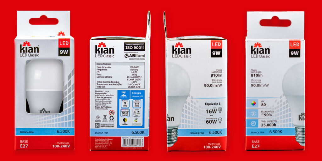 As embalagens são indispensáveis para a comercialização de muitos produtos, e com as lâmpadas não é diferente. São essas caixinhas que protegem as peças de possíveis danos causados pelo transporte e manuseio, e é por meio dela que o consumidor final tem acesso a informações relevantes, como garantias, cuidados e precauções.
