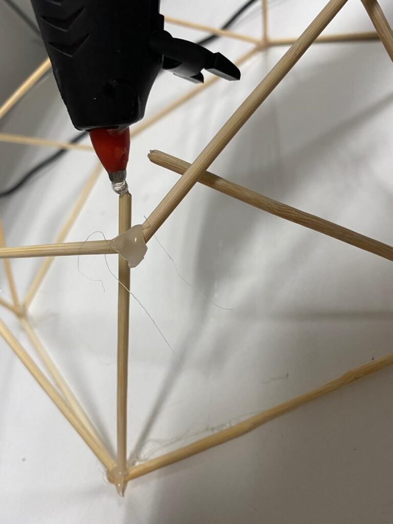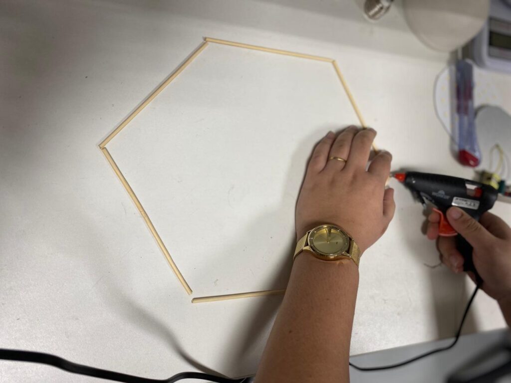 3) Cole as pontas dos hexágonos com cola quente e espere secar: