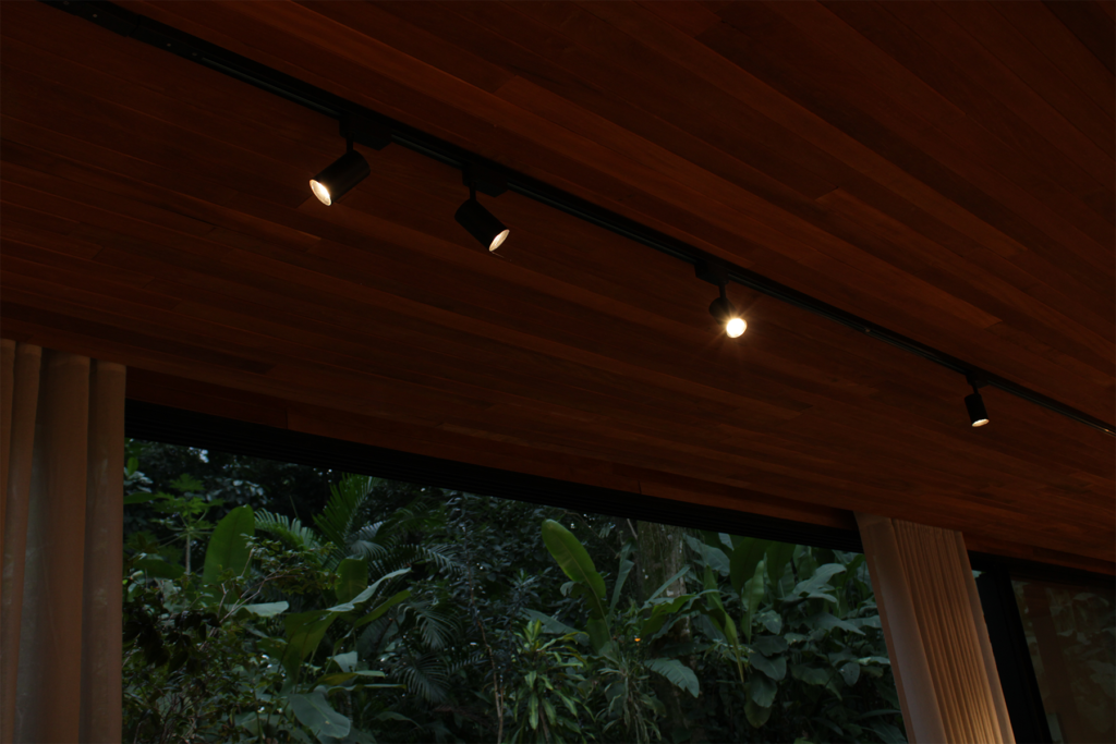 Os arquitetos Michelle Wilkinson, Thiago Morsh e Cadé Marino optaram por instalar nossos LED Spots e Trilhos em toda a extensão da casa. O modelo de luminária possui uma proposta de decoração mais industrial e é muito utilizado em salas de estar, de vídeo e também nos quartos.